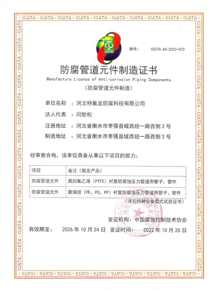 關(guān)于我們關(guān)于我們河北特氟龍防腐科技有限公司座落于美麗的衡水湖畔,位于河北省衡水市大廣高速棗強(qiáng)入口與240國道交叉口東行1公里,交通方便快捷。 公司是設(shè)備防腐生產(chǎn)、銷售、技術(shù)咨詢于一體的企業(yè)。主要產(chǎn)品有:鋼襯及玻璃鋼襯(PTFE、PVDF、FEP、PO、PE、 PVC 、CPVC、PP、PPH)儲(chǔ)罐、管道、塔器、反應(yīng)釜、風(fēng)機(jī)、補(bǔ)償器及各種非標(biāo)設(shè)備, PTFE、PFA、ETFE、ECTFE、聚脲、鱗片樹脂各種涂層噴涂復(fù)合襯里設(shè)備,以及玻璃鋼、儲(chǔ)罐、管道、塔器等玻璃鋼制品。 公司可根據(jù)各類防腐材料的耐腐性能及產(chǎn)品特性進(jìn)行選材,在滿足客戶的生產(chǎn)需求同時(shí),通過選材讓客戶節(jié)省采購成本。公司以科技為先導(dǎo),在產(chǎn)品生產(chǎn)制作上精益求精、不斷創(chuàng)新,提供優(yōu)良的產(chǎn)品及可靠的售后服務(wù),為客戶的安全生產(chǎn)護(hù)航.....